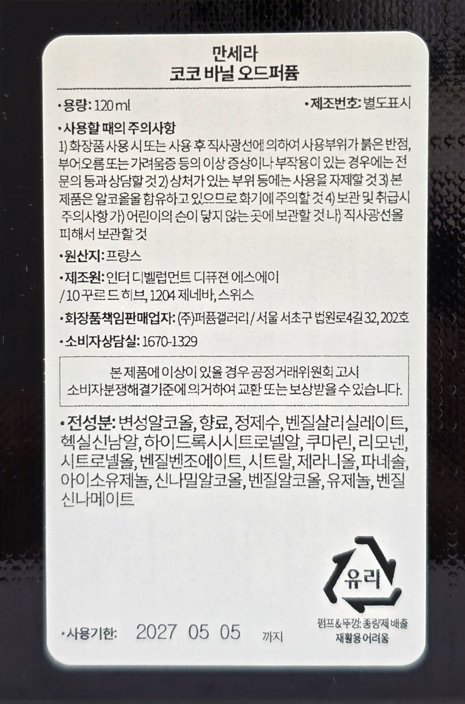 2023. 07. 05 ~ 2027. 07. 05 (유통 기한 : 제조일로부터 4~5년)